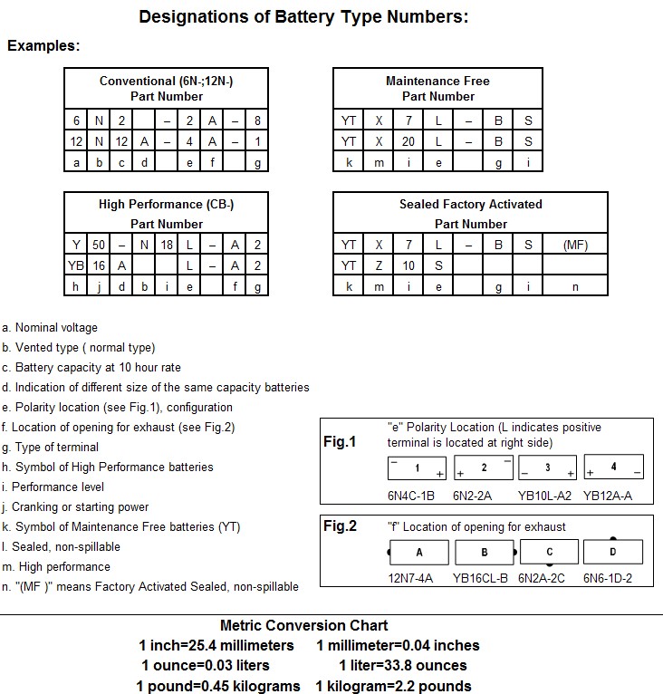 Designation of Battery Type No.